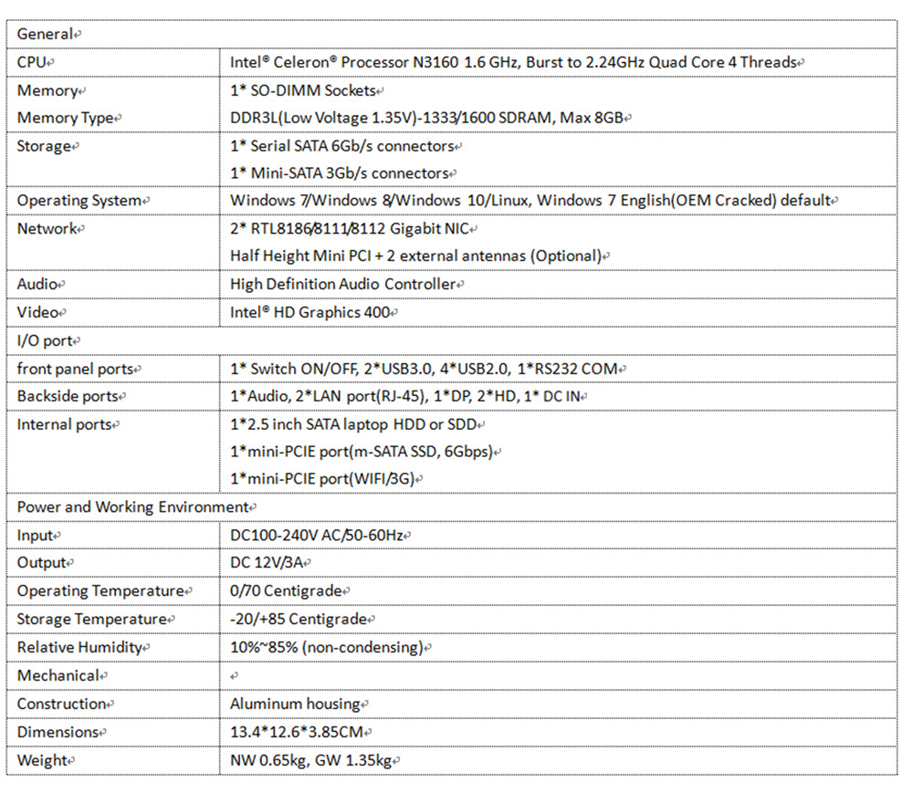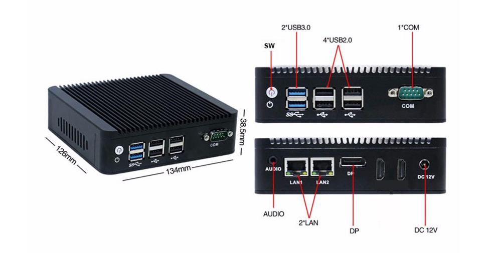 - 2 Gigabit Ethernet ports, supports Wake On LAN, TDP only 6W