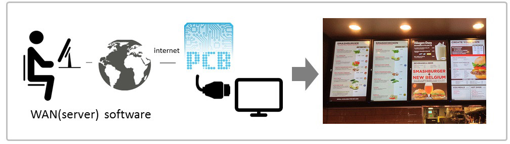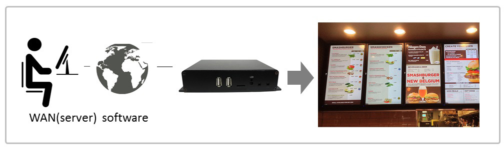 For the widespread project, it is advised to use Digi-Jupiter WAN(server) software to compile programs and distribute contents to thousands players(PBC) via the network or a USB disk. User can allot players(PCB) to different kind of groups and send different contents to those groups individually through internet from our server software.